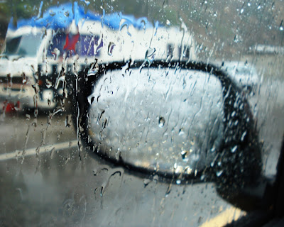 Traffic on the "S" curves was moving but cautious, as everyone splashed through sheets of water crossing the road, and watched out for rocks tumbling from the cliffs.