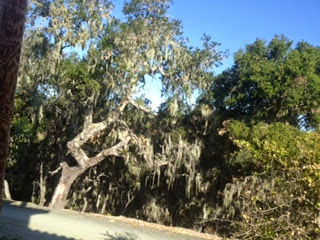 The Hearst Castle Visitor Center is some 1500 feet below the hilltop where William Randolph Hearst's monumental self-indulgence is built. The parking lot is huge, and on the Saturday we visited, completely full of cars. We cruised the rows before giving up and parking, along with other visitors, in the dirt off the access road.
